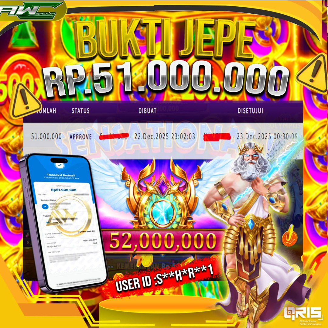 ID : S**H*R**1 JACKPOT PAUS DI SLOT PRAGMATIC PLAY NAMA GAME : GATES OF OLYMPUS 1000 TOTAL WITHDRAW : 51.000.000