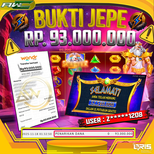 ID : Z*****1208 JACKPOT PAUS DI SLOT PRAGMATIC PALY NAMA GAME : Gates of Olympus Super Scatter TOTAL WITHDRAW : 93.000.000