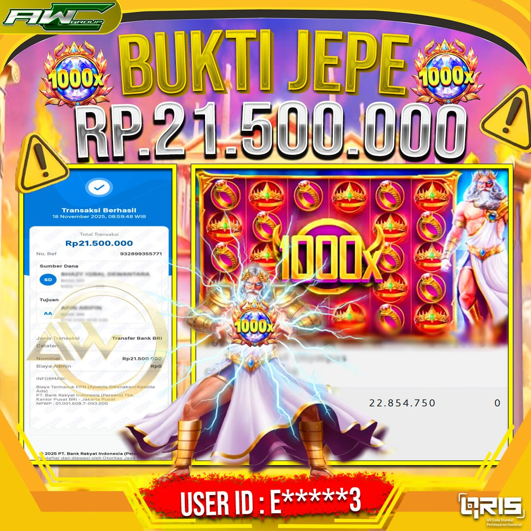 ID : E*****3 JACKPOT PAUS DI SLOT PRAGMATIC PLAY NAMA GAME : GATES OF OLYMPUS 1000 TOTAL WITHDRAW : 21.500.000