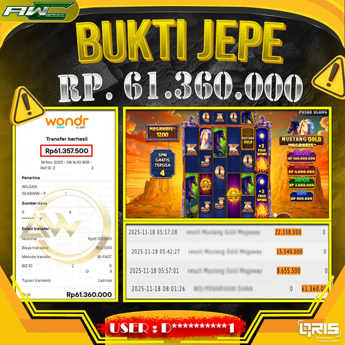 ID : D******1 JACKPOT PAUS DI SLOT PRAGMATIC PALY NAMA GAME : Must4ng Gold Meg4ways TOTAL WITHDRAW : 61.360.000