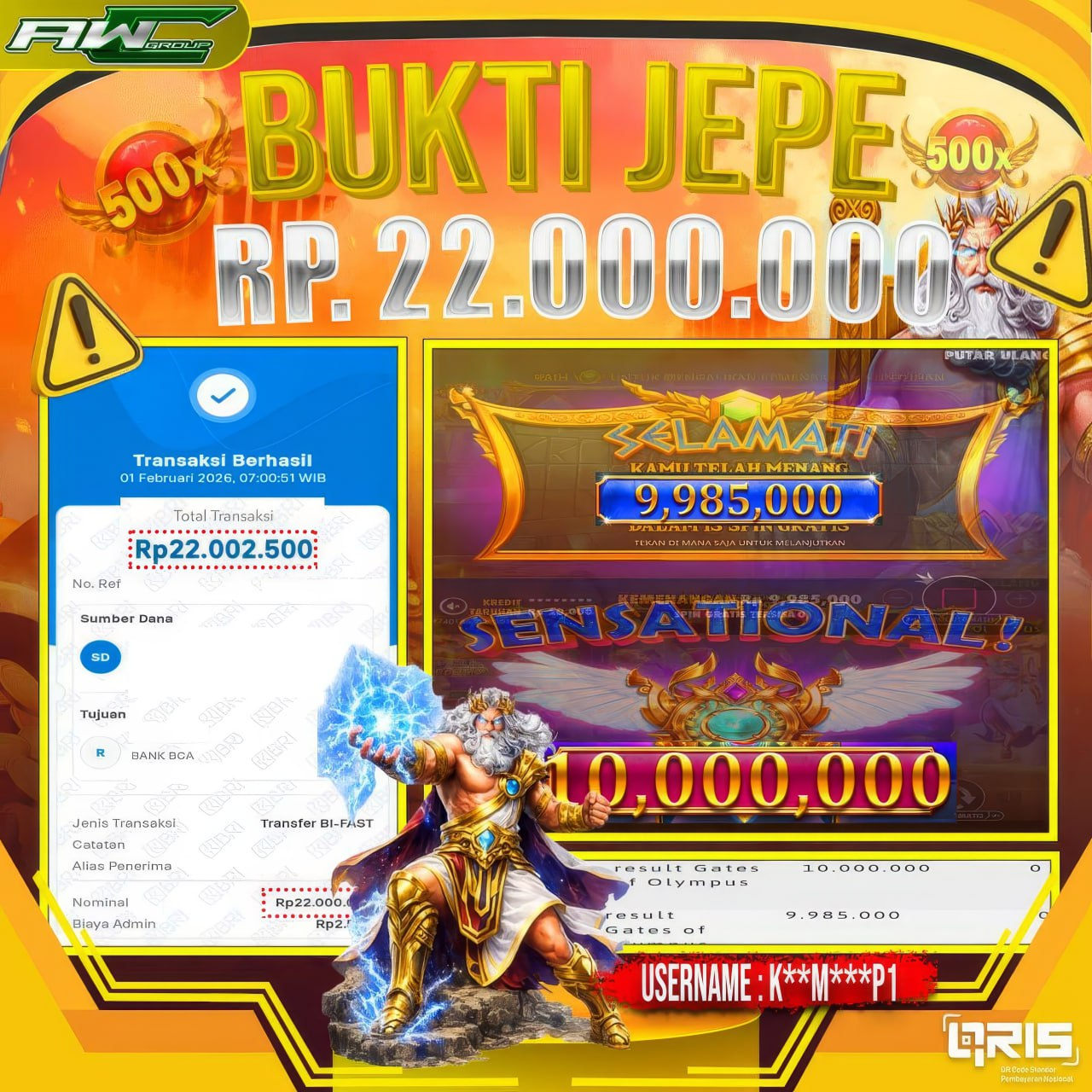 ID : K**M***P1 JACKPOT PAUS DI SLOT PRAGMATIC PLAY NAMA GAME : GATES OF OLYMPUS TOTAL WITHDRAW : 22.000.000