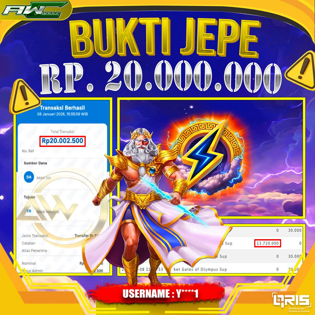 ID : Y****1 JACKPOT PAUS DI SLOT PRAGMATIC PLAY NAMA GAME : Gates of Olympus Super Scatter TOTAL WITHDRAW : 20.000.000