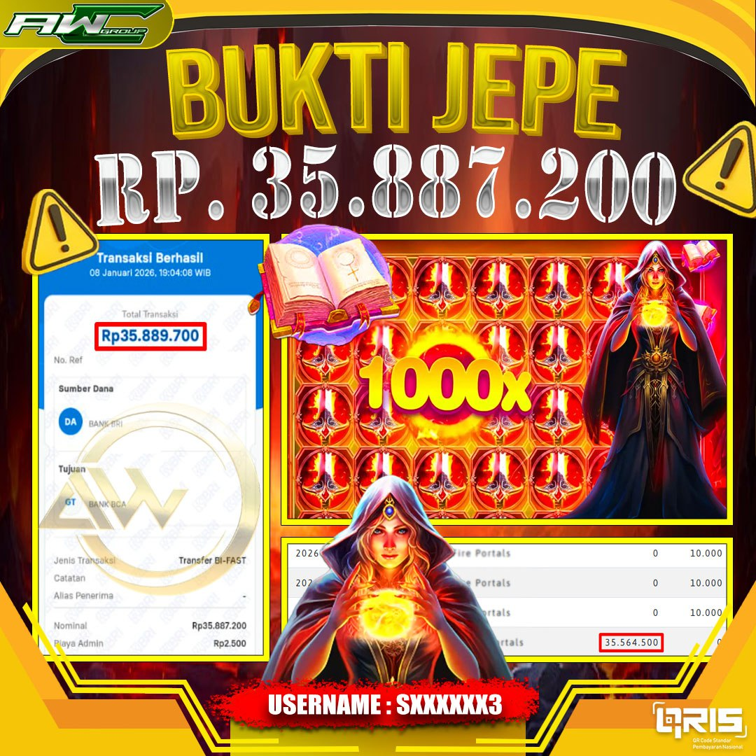 ID : SXXXXXX3 JACKPOT PAUS DI SLOT PRAGMATIC PLAY NAMA GAME : FIRE PORTALS TOTAL WITHDRAW : 35.887.200