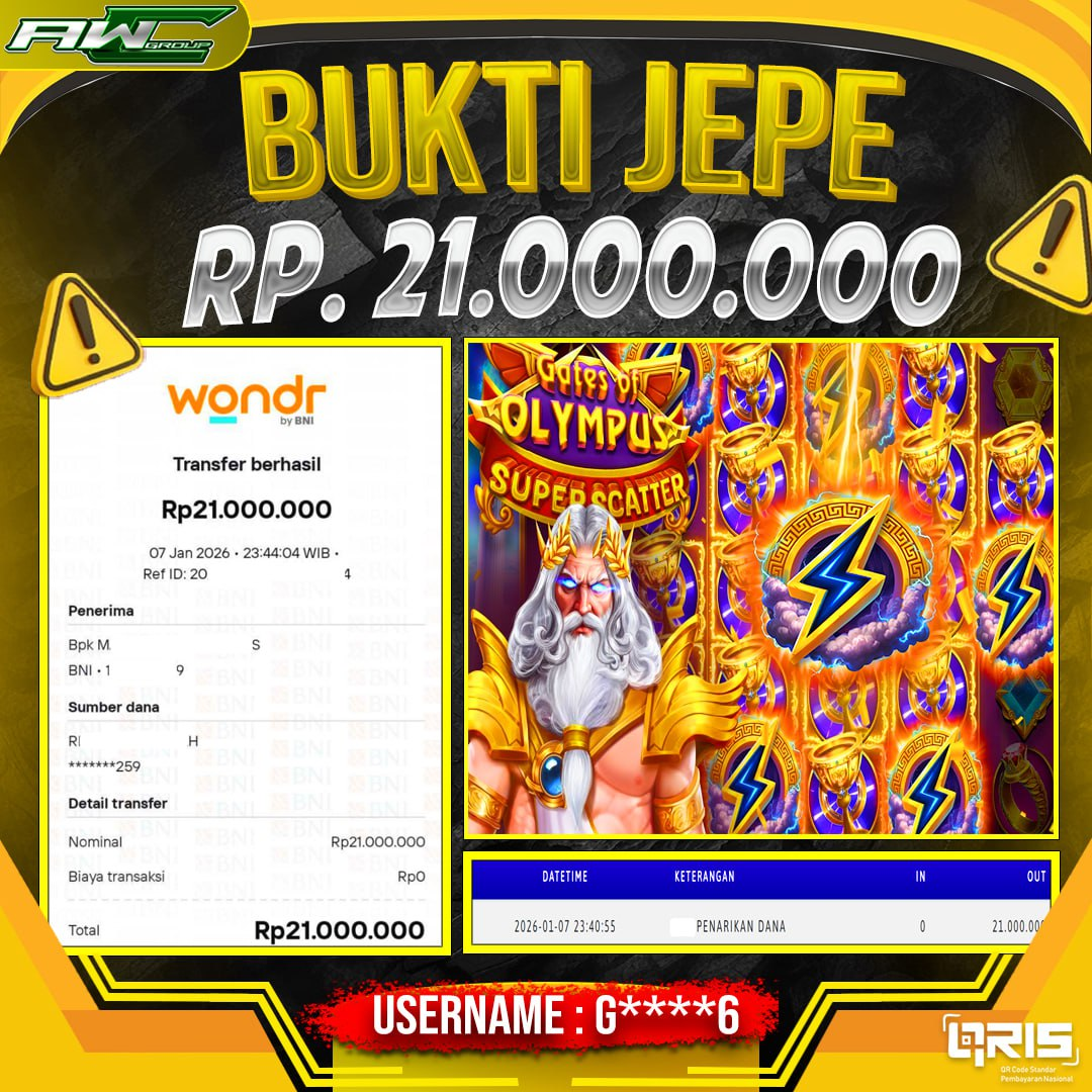 ID : G****6 JACKPOT PAUS DI SLOT PRAGMATIC PLAY NAMA GAME : GATES OF OLYMPUS SUPER SCATTER TOTAL WITHDRAW : 21.000.000
