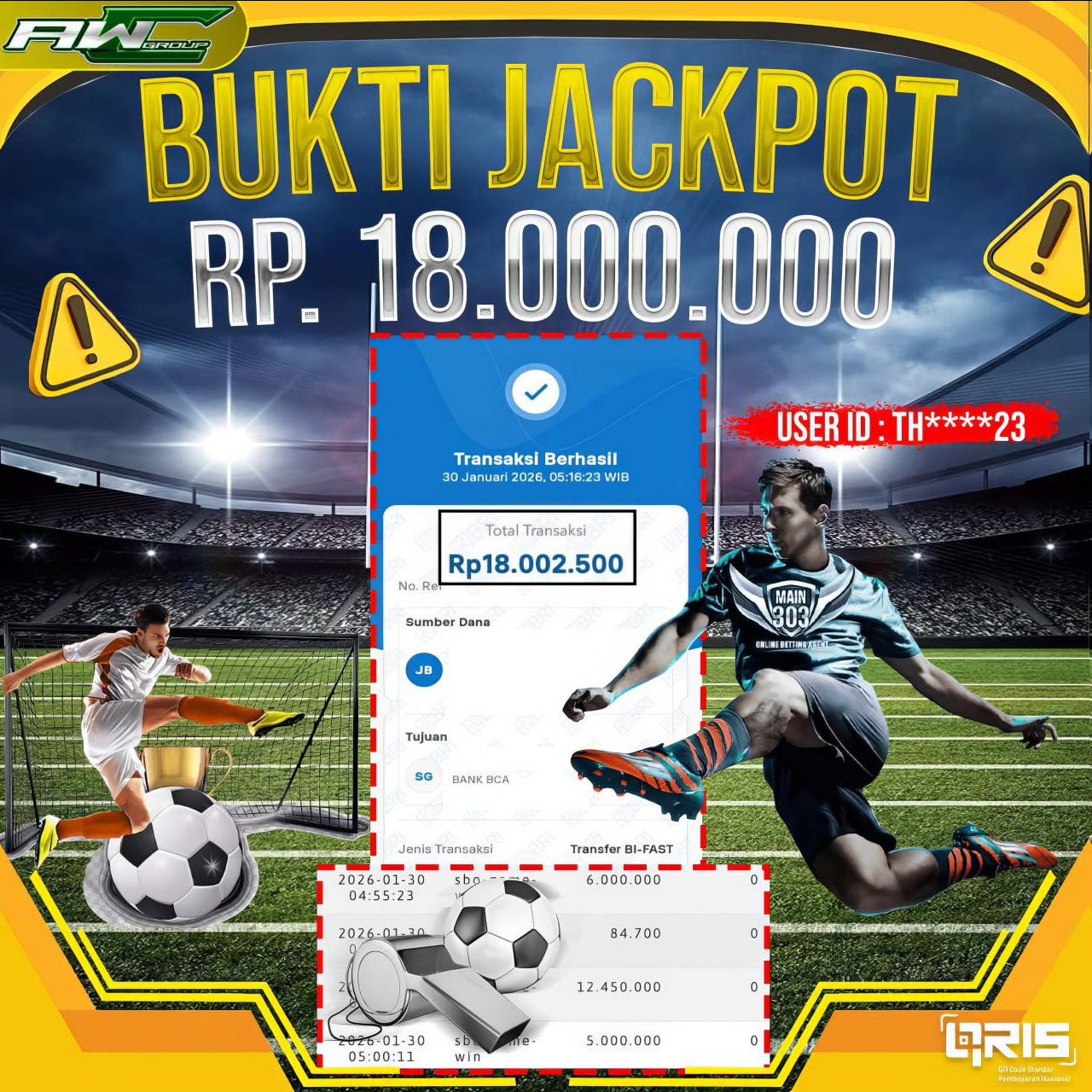 ID : TH****23 JACKPOT PAUS DI SBOBET NAMA GAME : FOOTBALL HANDICAP TOTAL WITHDRAW : 18.000.000