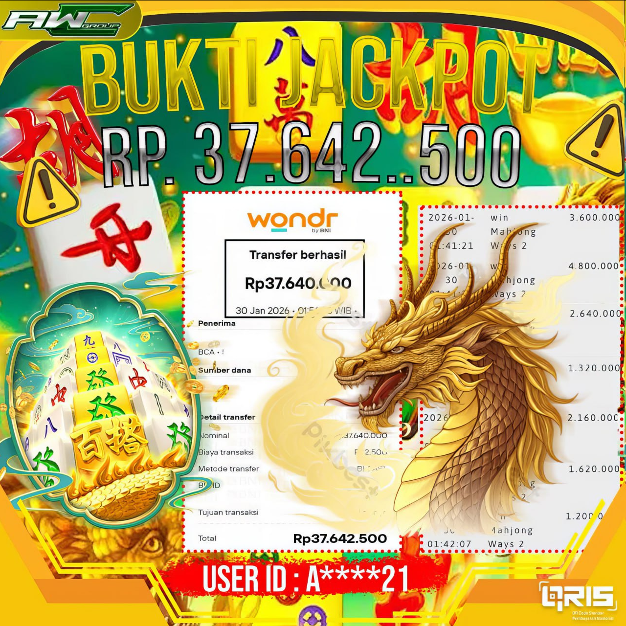 ID : ZEXXXXXX08 JACKPOT PAUS DI SLOT PG SOFT NAMA GAME : MAHJONG WAYS TOTAL WITHDRAW : 40.300.000